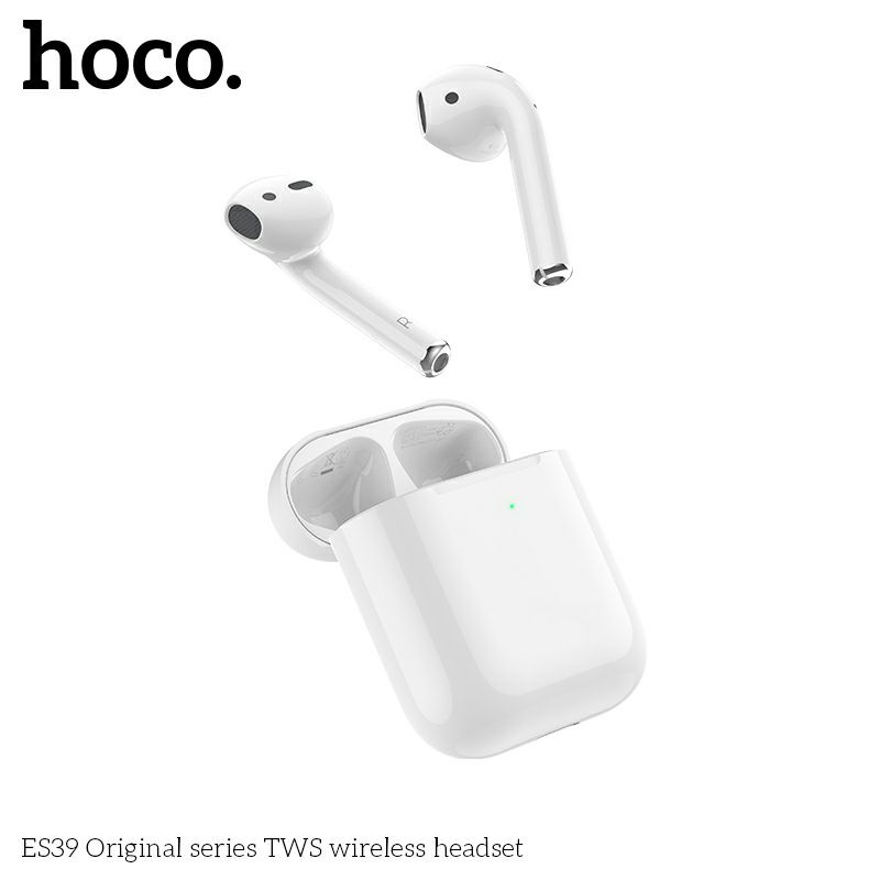 Tai nghe truewireless Hoco ES39 nghe nhạc liên tục trong 3.5 giờ, hỗ trợ sạc không dây Bluetooth: V5.0 Khoảng cách kết nối: 12m Input: DC 5V Khối lượng: 38g (gồm hộp sạc) Kích thước: 53.8 x 44.3 x 21.4mm Dung lượng pin hộp sạc: 300mAh Dung lượng pin tai nghe đơn: 30mAh Thời gian sạc: 1 giờ Thời gian chờ: 200 giờ Thời gian sử dụng: 3.5 giờ Hỗ trợ: tai nghe rảnh tay A2DP, Avrcp