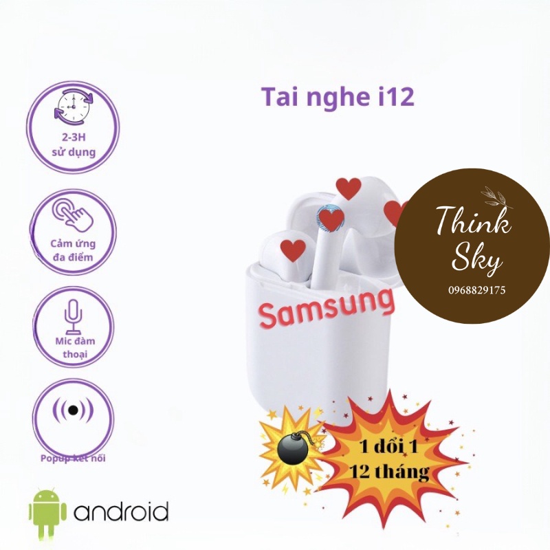 - bh 12 tháng 1 đổi 1 không lấy phí trong 30 ngày (nếu lỗi từ nhà sản xuất) - Khi mở cống phẩm người tập luyện vui đùa quay về video công đoạn mở và để được tốt và chất lượng 100% đổi lại cống phẩm mới nếu Shop giao nhầm bị lỗi, nhầm hàng hoặc hư lại trong trong tiến trình chuyên chở - Đừng ngại liên lạc shop qua kênh chat nếu người tập cần tương trợ nhé ♥️e Bluetooth I12, tai nghe không cần dây TWS bản nước ngoài tiếng động chuẩn HIFI dành cho các dòng máy tính bảng và laptop