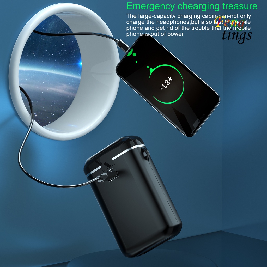 Item Name: Wireless Earphone Material:ABS Waterproof Grade: IPX7 Bluetooth Version: 5.1 Bluetooth Distance: 10m Auto Pairing: Yes Charging Bin Input Current: 5V/1A Charging Compartment Battery Capacity: 4000mAh (Included) Earphone Battery Capacity: 50mAh (Included) Noise Reduction Version: CVC8.0 Size:10cmx8cmx3.5cm/3.94inx3.15inx1.38in