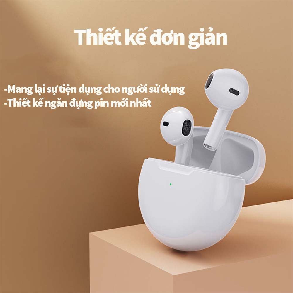 * Shop cam kết bán hàng chất lượng loại 1 * Sản phẩm đúng mô tả đúng hình ảnh * Đổi trả và hoàn tiền 100% sản phẩm bị lỗi * Giao hàng tận nơi, thu tiền tận nhà FREESHIP với đơn hàng từ 50k ( sử dụng mã vận chuyển SHOPEE ) Đặc điểm của tai nghe Bluetooth Pro 6 TWS, tai phone không dây mini giá rẻ dùng cho Androi và Ios - Tai nghe bluetooth không dây pro 6 có chip Bluetooth để đảm bảo chất lượng âm thanh và độ trung thực cao nhất của tai nghe. - Tai nghe bluetooth không dây pro 6 có hộp đựng đáng tin cậy, dễ mang theo và bảo vệ tốt. - Tai nghe bluetooth không dây pro 6 có thiết kế siêu nhẹ và thoải mái, tai nghe tiện dụng dù đeo trong thời gian dài cũng không mang lại cảm giác nặng nề. - Tai nghe bluetooth không dây pro 6 tương thích với các điện thoại thông minh phổ biến IOS, Android, v.v., thời gian hoạt động lên đến 3-4 giờ, thời gian chờ 180 giờ, sạc nhanh 1 giờ, phạm vi 10 mét/30 feet. Cách kết nối tai nghe bluetooth không dây pro 6 với điện thoại: Khi tai nghe bluetooth không dây pro 6 tắt, hãy nhấn và giữ MFB trong khoảng 3 giây cho đến khi đèn báo tai nghe nhấp nháy màu đỏ và xanh dương, sau đó nhấn TL để vào trạng thái tìm kiếm. Bật chức năng Bluetooth của điện thoại di động, nhấp vào "tìm kiếm thiết bị Bluetooth" để tìm kiếm tai nghe và nhấp vào "Kết nối TL". Ưu điểm của tai nghe bluetooth không dây pro 6 Tai nghe bluetooth không dây pro 6 có chức năng Pop up cho IOS Tai nghe bluetooth không dây pro 6 hỗ trợ đổi tên và vị trí GPS. Tai nghe bluetooth không dây pro 6 hỗ trợ gọi điện hai tai, tai nghe trái và phải có thể được sử dụng riêng biệt. Tai nghe bluetooth không dây pro 6 tự động ghép nối / kết nối tự động. Tai nghe bluetooth không dây pro 6 không có đèn LED khi sử dụng. Tai nghe bluetooth không dây pro 6 có nút điều khiển cảm ứng đa năng. Tai nghe bluetooth không dây pro 6 có âm thanh nổi Hifi và âm trầm. Tai nghe bluetooth không dây pro 6 hỗ trợ kích hoạt Siri. Tai nghe bluetooth không dây pro 6 tương thích hoàn hảo với hệ điều hành IOS và Android. Lưu ý: Chức năng pop-up mới nhất sẽ chỉ hoạt động khi kết nối với IOS 13.2 trở lên, hãy đảm bảo rằng bạn đã cập nhật Hệ điều hành IOS của mình