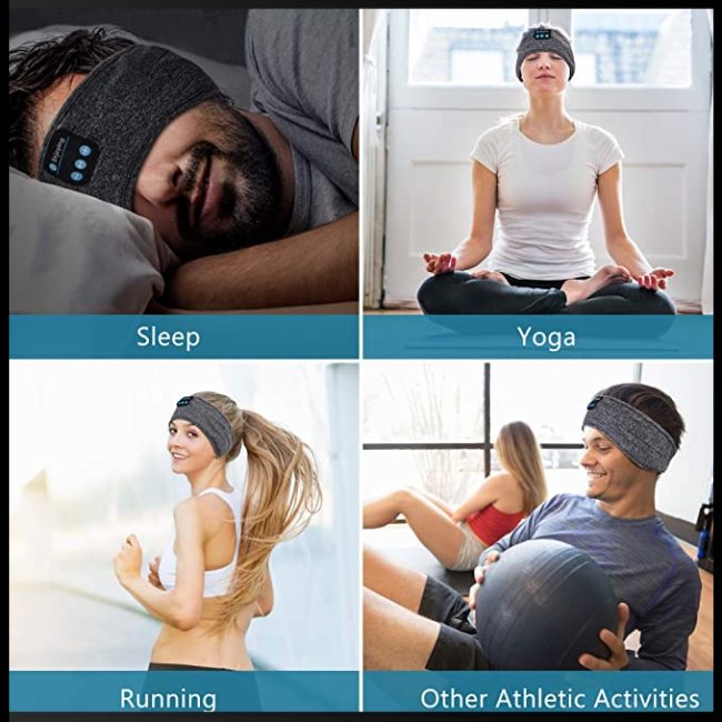 Loa siêu mỏng, Tai nghe ngủ tốt nhất cho người ngủ bên: Băng đô Bluetooth tích hợp 2 loa siêu mỏng, mô-đun điều khiển thiết bị ở giữa Băng đô ngủ, không nhấn tai. Chất liệu thoải mái và thoáng khí, có thể giặt được: Băng đô Bluetooth được làm bằng dây bện ổn định và cung cấp lớp lót lưới thoáng khí, cực kỳ co giãn, vừa vặn với hầu hết các kích thước đầu, còn gì hơn, cực kỳ mềm mại và không gây dị ứng. Mô tả: