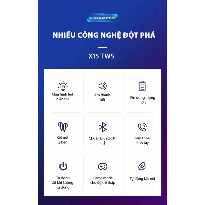 Video giới thiệu sản phẩm Tai nghe gaming bluetooth 5.1 X15 tai phone nghe nhạc thể thao không dây pin trâu nhét tai chơi game không độ trễ. Nguồn: Shopee.