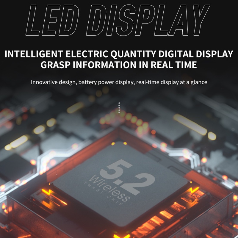 Đặc điểm: 1. Chống mồ hôi và chống nước 2. Màn hình kỹ thuật số LED, hiển thị nguồn điện thời gian thực, mức công suất trong nháy mắt 3. Khởi động ghép nối tự động, tích hợp IC giảm tiếng ồn chủ động, cuộc gọi HD. 4. Thiết kế điều khiển cảm ứng, dễ vận hành 5. Bluetooth 5.2, tiêu thụ điện năng thấp 6. Hỗ trợ trợ lý giọng nói