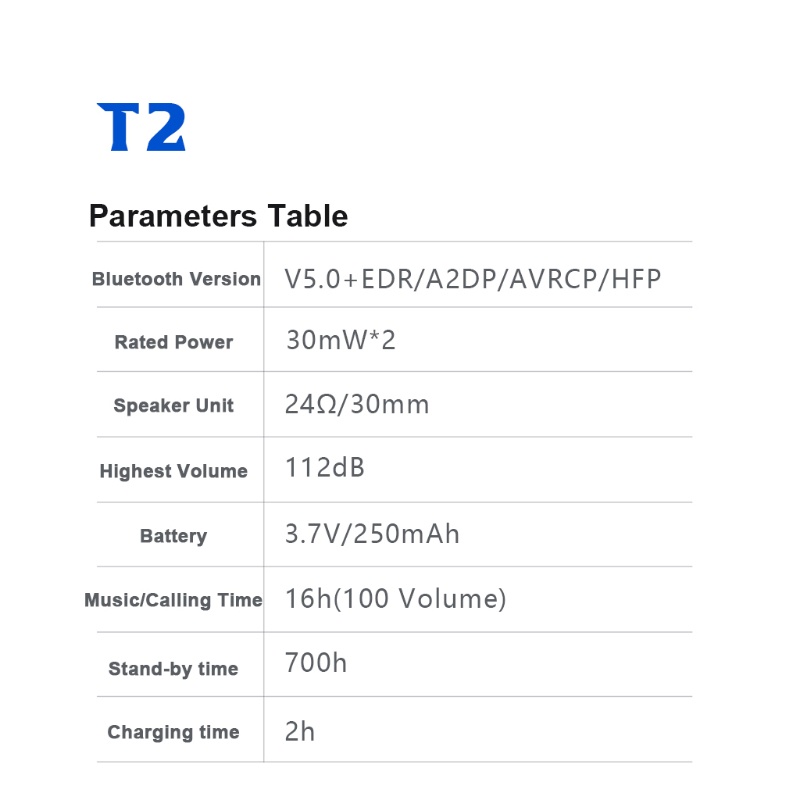 Thông số kỹ thuật ' Chất liệu ' ABS Kích thước “ Như được hiển thị trong hình ảnh Dải tần số “ 2.4026ghz-2.480ghz Đầu ra âm thanh - Đầu ra âm thanh nổi hai kênh Công suất định mức ' 30 Mw X2 Đơn vị loa ' 24q '30mm Thông số kỹ thuật ' Chất liệu ' ABS Kích thước như trong hình Dải tần số “ 2.4026GHz-2.480GHz Âm nhạc 'Thời gian đàm thoại ' 16 giờ Thời gian chờ - 700 giờ Thời gian sạc ' 2 giờ
