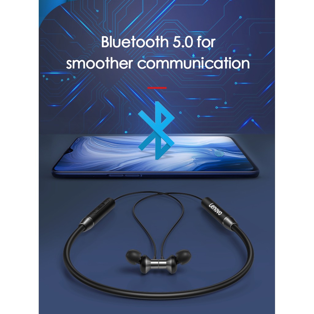 Giai điệu bionic, Dây đeo cổ Bluetooth của Lenovo HE05 chính hãng Tai nghe kim loại cấp độ âm trầm thấp mạnh mẽ.