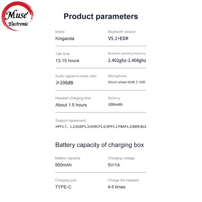 Dung lượng pin tai nghe: 3.7V / 100MA