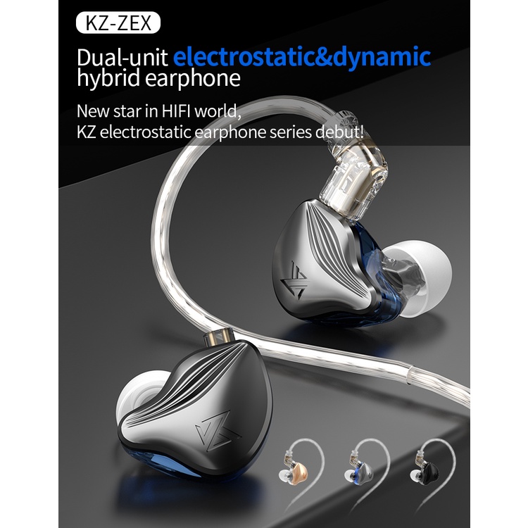 Tai nghe KZ ZEX 1 trình điều khiển tĩnh điện âm thanh sống động Nút tai Cáp có thể tháo rời Tai nghe hạn chế tiếng ồn Tai nghe chơi game thể thao