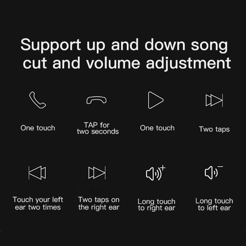 Tai nghe nhẹ Tai nghe tương thích Bluetooth Thoải mái khi đeo Tai nghe Các tính năng: Thương hiệu mới và chất lượng cao Kết nối ổn định và liên tục với Bluetooth 5.0, truyền tải nhanh hơn và xa hơn, tiêu thụ điện năng thấp, sử dụng lâu dài trong thời gian và tận hưởng trải nghiệm chơi game và video gần như không bị trễ. Tai nghe in-ear không dây được làm theo ống tai và vừa vặn hoàn hảo. Tai nghe này không chỉ có thể đảm bảo sự thoải mái khi đeo cả ngày mà còn cải thiện hiệu quả cách âm của tai nghe. Âm thanh nổi và độ trung thực cao, giúp bạn cảm nhận ở trung tâm của màn trình diễn trực tiếp. Cho Cảm ứng thông minh, chế độ chờ lâu, chỉ cần một lần chạm, bạn có thể điều khiển mọi thứ. Tai nghe 35mAh tích hợp và hộp sạc 400mAh, đảm bảo sử dụng được đến 3 giờ.