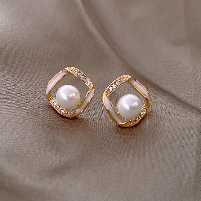 Giới thiệu Bông Tai Ngọc Trai Hình Vuông Đơn Giản Thời Trang Hàn Quốc 2022