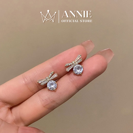 ➤ Tên hàng hóa: Bông tai nơ đính đá chuôi bạc 925 cao cấp dành cho nữ Annie - VV54