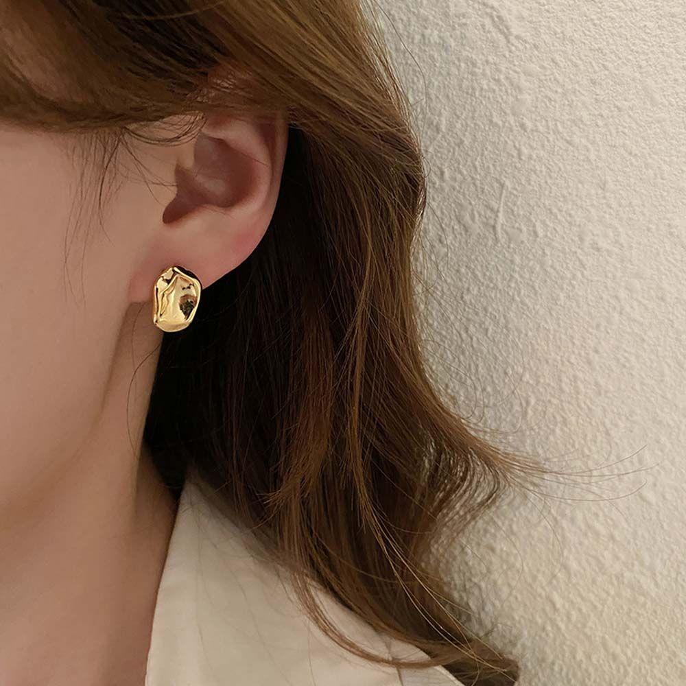 Gói hàng bao gồm: 1 đôi bông tai Bông tai đinh tán bất thường Bông tai bằng kim loại Bông tai nữ Hoa tai Phong cách Hàn Quốc Trang sức thời trang Búa tay Thiết kế bề mặt vàng bất thường Màu vàng bạc Màu sắc cổ điển Thời trang Đơn giản Quà tặng đám cưới