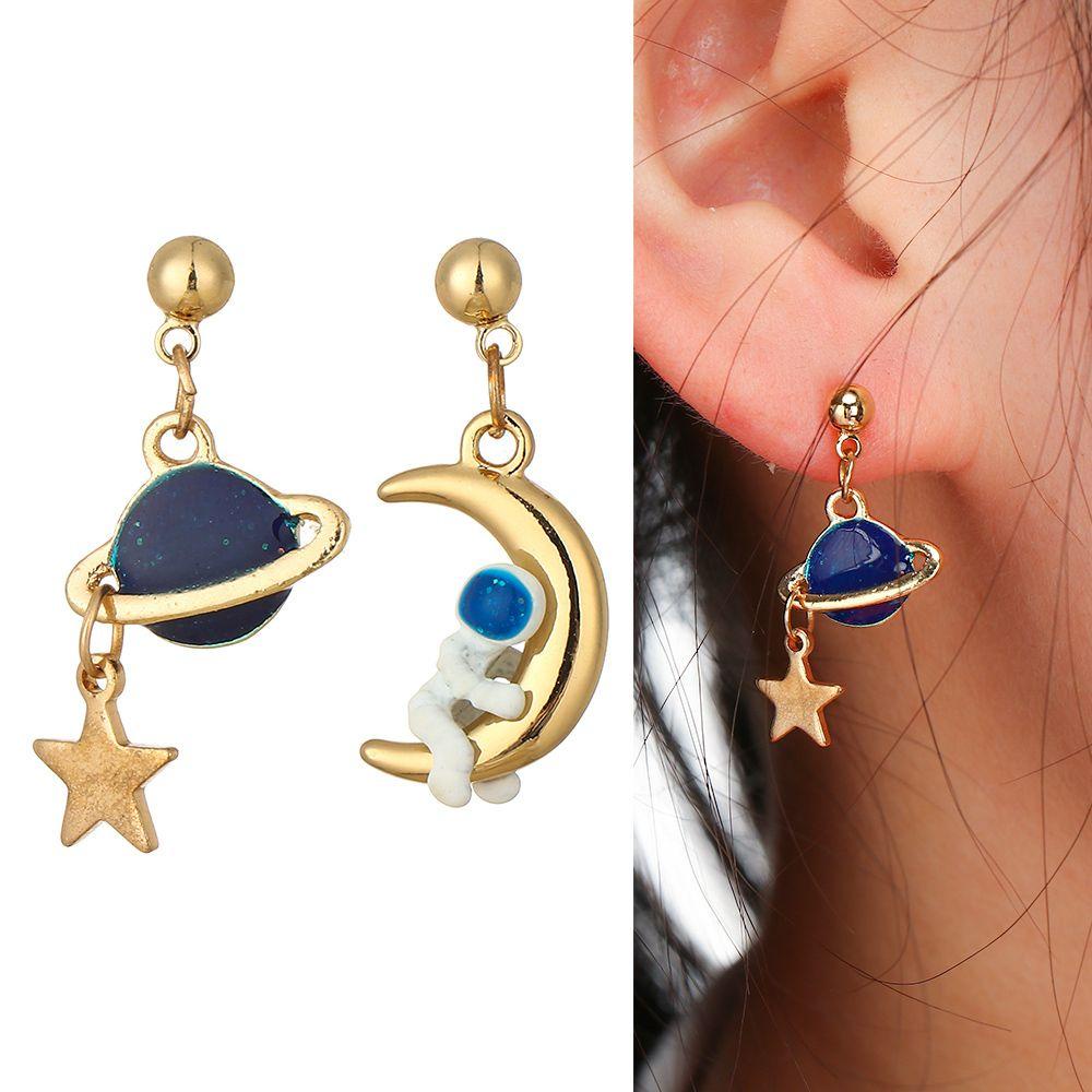 1 x Bông tai đinh tán Astronaut Stud Earrings Spaceman Star Moon Earrings Planet Star Stud Dangle Earrings Charm Jewelry 3D Women Girls Asymmetric Fashion