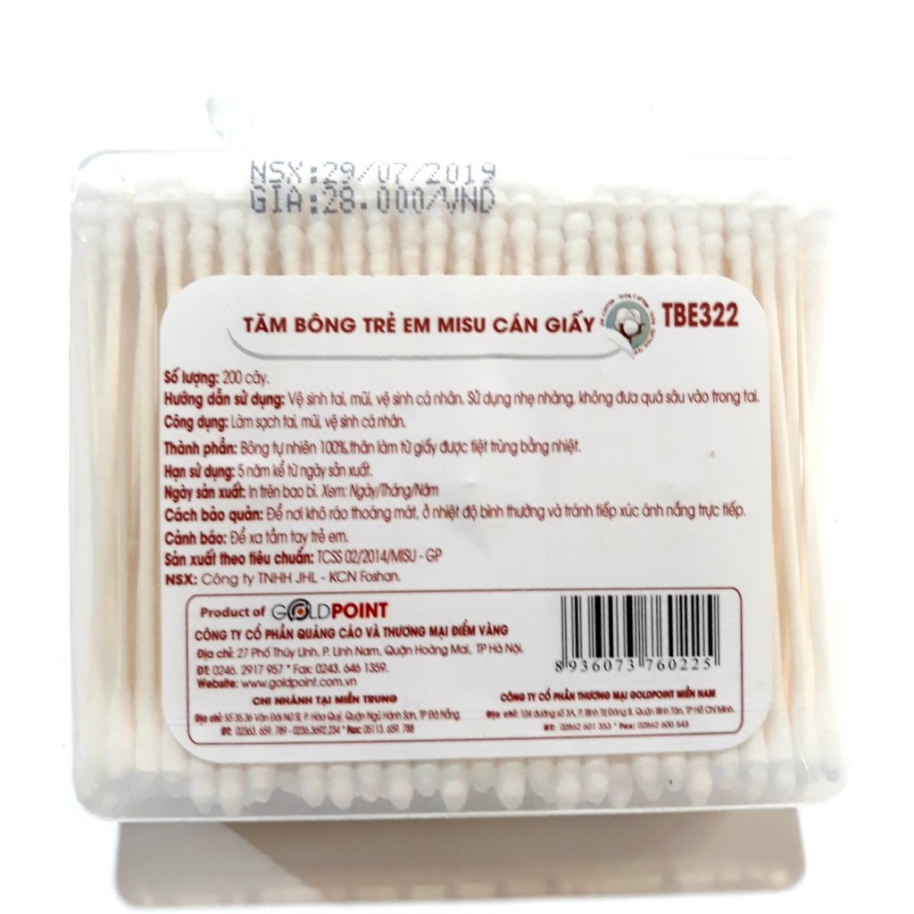 Giới thiệu Tăm Bông Misu Trẻ Em Cán Giấy Hộp 200 Que ( Đầu bông tăm nhỏ)