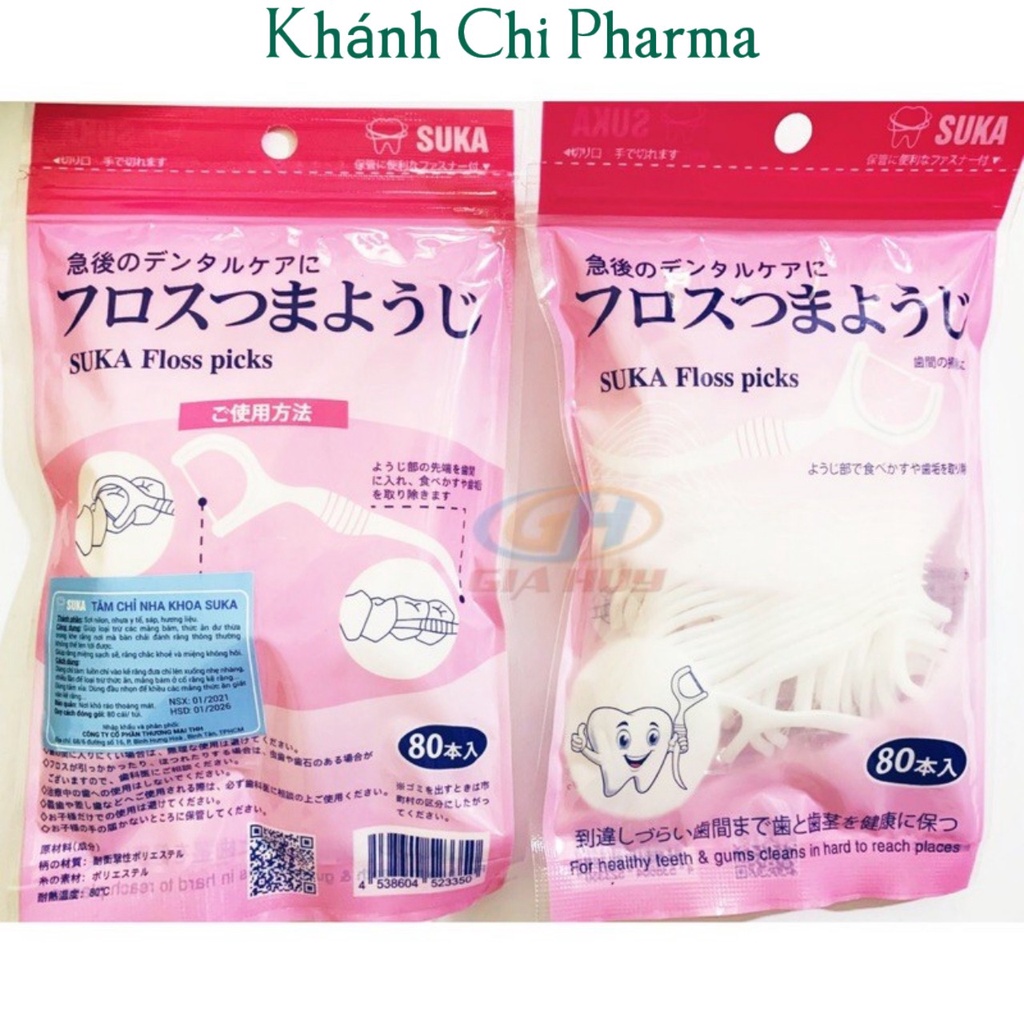 Tăm chỉ nha khoa SUKA. 1. Thành phần: Sợi Nilon, nhựa y tế, sáp, hương liệu 2. Công dụng tăm chỉ nha khoa. - Thiết kế đặc biệt bởi chuyên gia nha khoa Nhật Bản, dễ dàng lấy đi các mảng bám trong kẽ răng nơi mà bàn chảI đánh thông thường khó len đến được. - Chỉ nha khoa có cán giúp việc cầm nắm dễ dàng, một đầu dùng như tăm chỉ nha khoa, một đầu dùng như tăm xỉa răng truyền thồng. - Giúp răng miệng của bạn được sạch sẽ và răng chắc khỏe hơn và miệng không có mùi hôi khó chịu. - Sử dụng chỉ nha khoa kết hợp với bàn chải đánh răng là giải pháp chăm sóc răng miệng rất hiệu quả. 3. Cách dùng chỉ nha khoa suka - Dùng chỉ tơ nha khoa, luồn chỉ và kẽ răng, từ từ đưa chỉ lên xuống nhẹ nhàng, nhiều lần để loại trừ thức ăn, mảng bám ở cổ răng, kẽ răng... - Dùng đầu tăm xỉa: chỉ dùng đầu nhọn để khều các mảng bám thức ăn giắt vào kẽ răng. Khi dùng cần cẩn thận tránh làm trầy, xây xát nướu, gây chảy máu chân răng. - Tăm chỉ nha khoa là sự kết hợp hoàn hảo của hai sản phẩm trên nên chúng rất cần thiết cho bạn và gia đình trong việc chăm sóc răng miệng. Quy cách đóng gói: 80 cái/ túi. Tăm chỉ nha khoa SUKA Nhập khẩu và phân phối: Công ty cổ phần thương mại THH Việt Nam