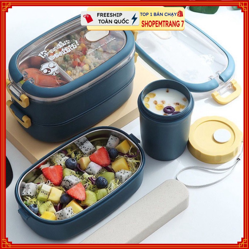 Nhà Cửa & Đời Sống > Đồ dùng nhà bếp và hộp đựng thực phẩm > Hộp, túi đựng thực phẩm > [Tặng bộ đũa thìa inox] Hộp cơm giữ nhiệt 2 tầng ruột inox - Hộp cơm văn phòng 2 tầng ruột inox - Dung tích 1500ml
