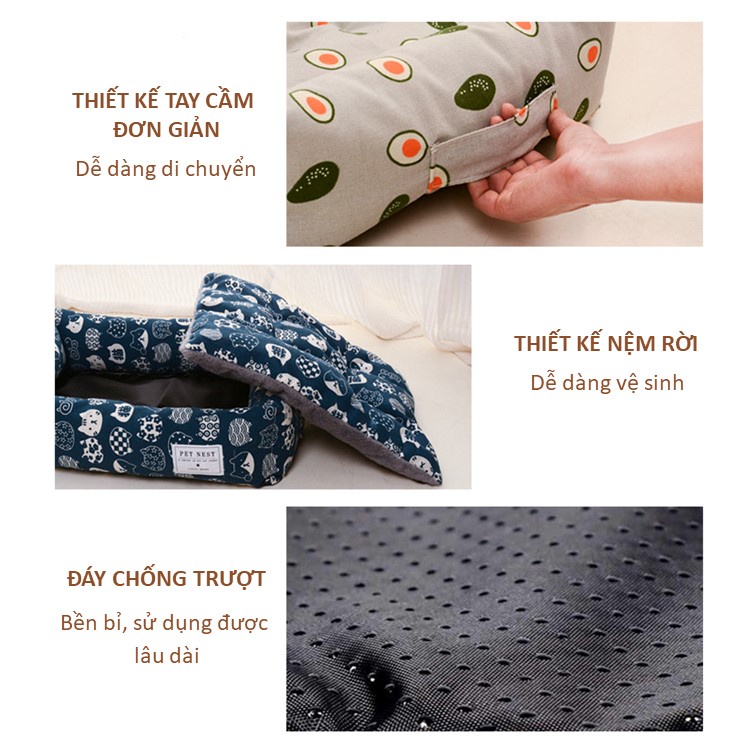 🙀 Ổ Nệm Chữ Nhật Cho Thú Cưng Nệm Rời ON339 - MIAOCAT