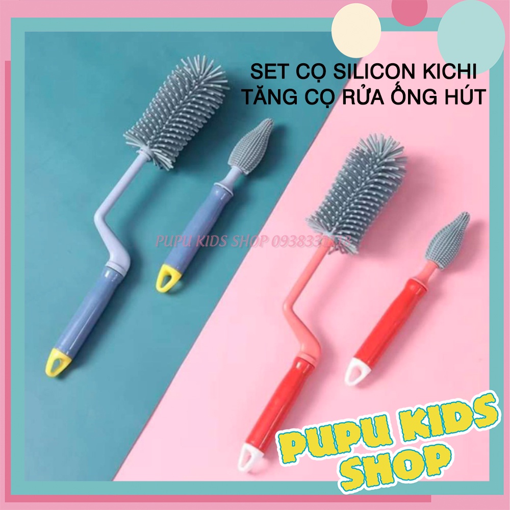 Giới thiệu (Tặng Cọ Ống Hút) cọ rửa bình sữa núm ti SILICON 2 chi tiết kichi, siêu mềm cọ sạch bình sữa và núm ti