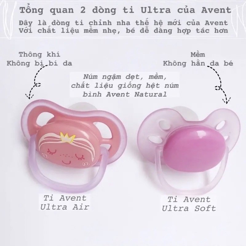 Giới thiệu ( Tặng dây đeo ti giả) Ti giả AVENT Ultra Soft/ Ultra Air (lẻ 1 cái ko hộp)