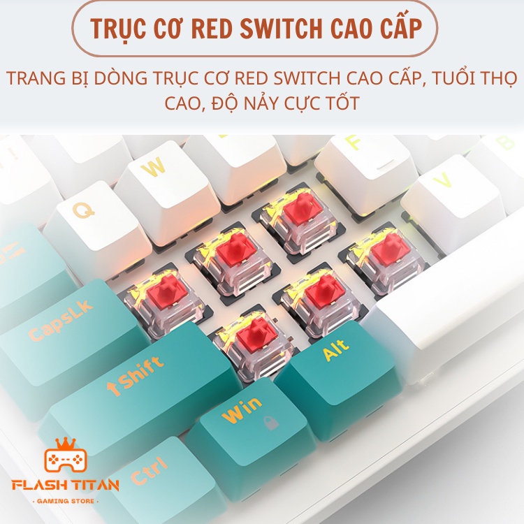 - Bàn phím cơ K3 với layout 104 phím, phù hợp với nhiều đối tượng người dùng như game thủ, nhân viên văn phòng; nhưng có mức giá cực kỳ sinh viên. - Bàn phím cơ sử dụng dòng red switch cao cấp cho độ nảy, độ đàn hồi cực tốt, Switch red tuổi thọ tốt lên đến 60 triệu lượt nhấn, đảm bảo bàn phím bền bỉ đồng hành cùng bạn trong suốt thời gian dài. - Keycap là loại nhựa ABS có bề mặt nhám chất lượng cao, chống thấm mồ hôi cực kỳ tốt. Hơn nữa, Keycap bàn phím còn được mix màu tạo điểm nhấn khá độc đáo, đẹp mắt. - Kết nối bằng cáp rời TYPE C vô cùng tiện lợi, dễ dàng tháo lắp khi phải di chuyển. - Bàn phím trang bị đèn led đẹp mắt, màu sắc bắt kịp xu hướng; nhiều chế độ nháy lạ, tạo cảm giác thích thú khi sử dụng - Keycap thiết kế thông minh độ trũng bề mặt vừa phải, switch cao cấp nên tạo cảm giác bấm khá đầm, chắc tay, thiết kế che chắn hiệu quả cho các bo mạch bên trong để ngăn nhiễm ẩm trong các tình huống bị đổ tràn nước.