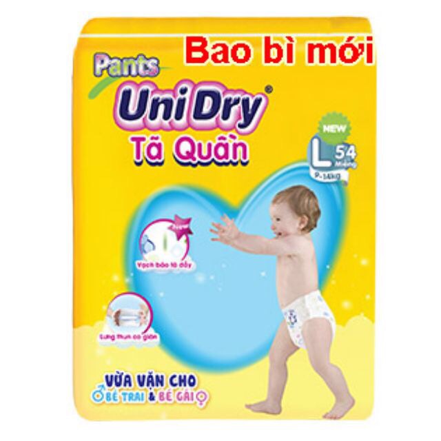 Có đợt giảm giá của tả quần UniDry Giá bao bì 271k , giá km đợt nàytăng quà Size M (7-11kg) : 60mieng Size L (9-14kg): 54 mieng ✳️✳️Tả quần Unidry với ưu điểm thấm hút nhanh,màng vải thoáng khí,ko gây hằn và hăm da , giúp bé luôn khô ráo cả ngày Đai hông của tả được thiết kế co giãn linh động thoải mái trong mọi vận động , lưng thun tự điều chỉnh , vừa vặn với bé Lõi bông siêu mỏng được tăng cường hạt siêu thấm tăng khả năng thấm hút lên 25% mang lại sự khô thoáng tuyệt đối với hiển thị ẩm ướt báo hiệu đến lúc thay tả , tiên dụng cho mẹ thay tã cho bé khi đã đầy Sản phẩm chiết xuất trà xanh nhẹ nhàng chăm sóc da bé mềm mịn và thơm mát ✳️✳️Xuất xứ : Việt Nam , hàng xuất khẩu nên size rộng rất thoải mái
