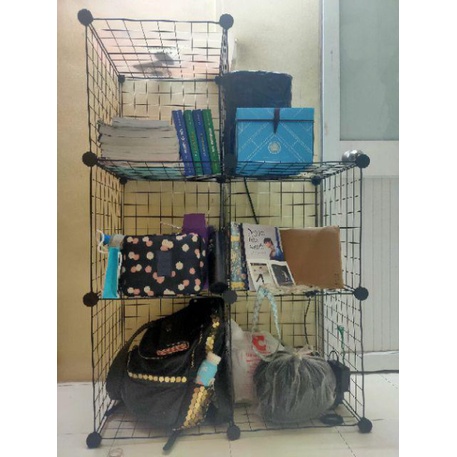 Giới thiệu Tặng móc sườn 20k- KỆ TỦ LƯỚI đa năng để sách, decor, trưng bày, trang trí 6 ô bậc thang