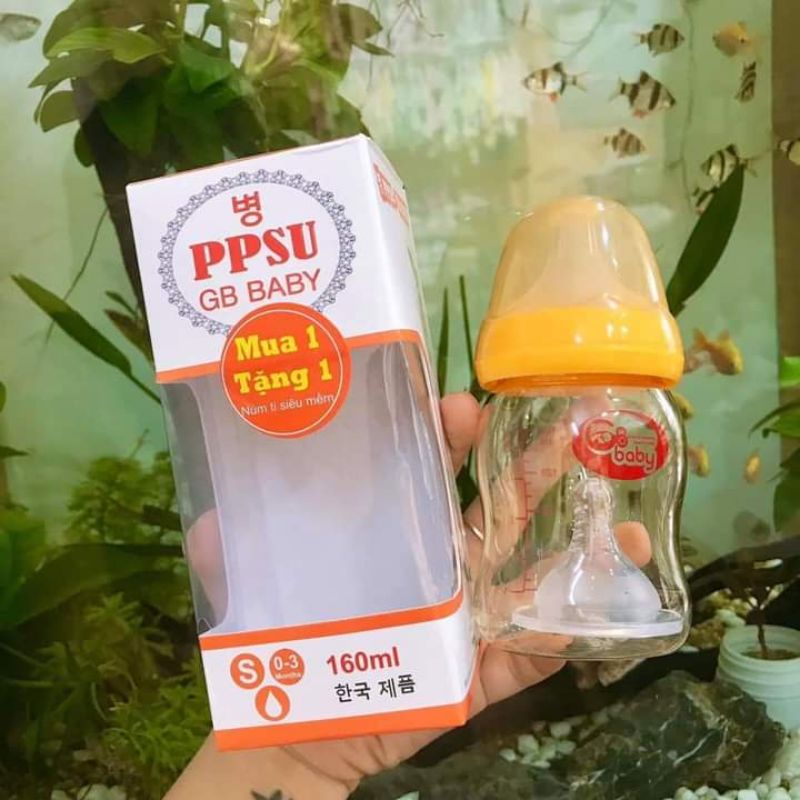 Giới thiệu [tặng núm] Bình sữa Gb baby cổ rộngmua1tặng1Bình sữa PPSU GB BABY Hàn Quốc 80ml/160ml/180ml/240ml có tay cầm