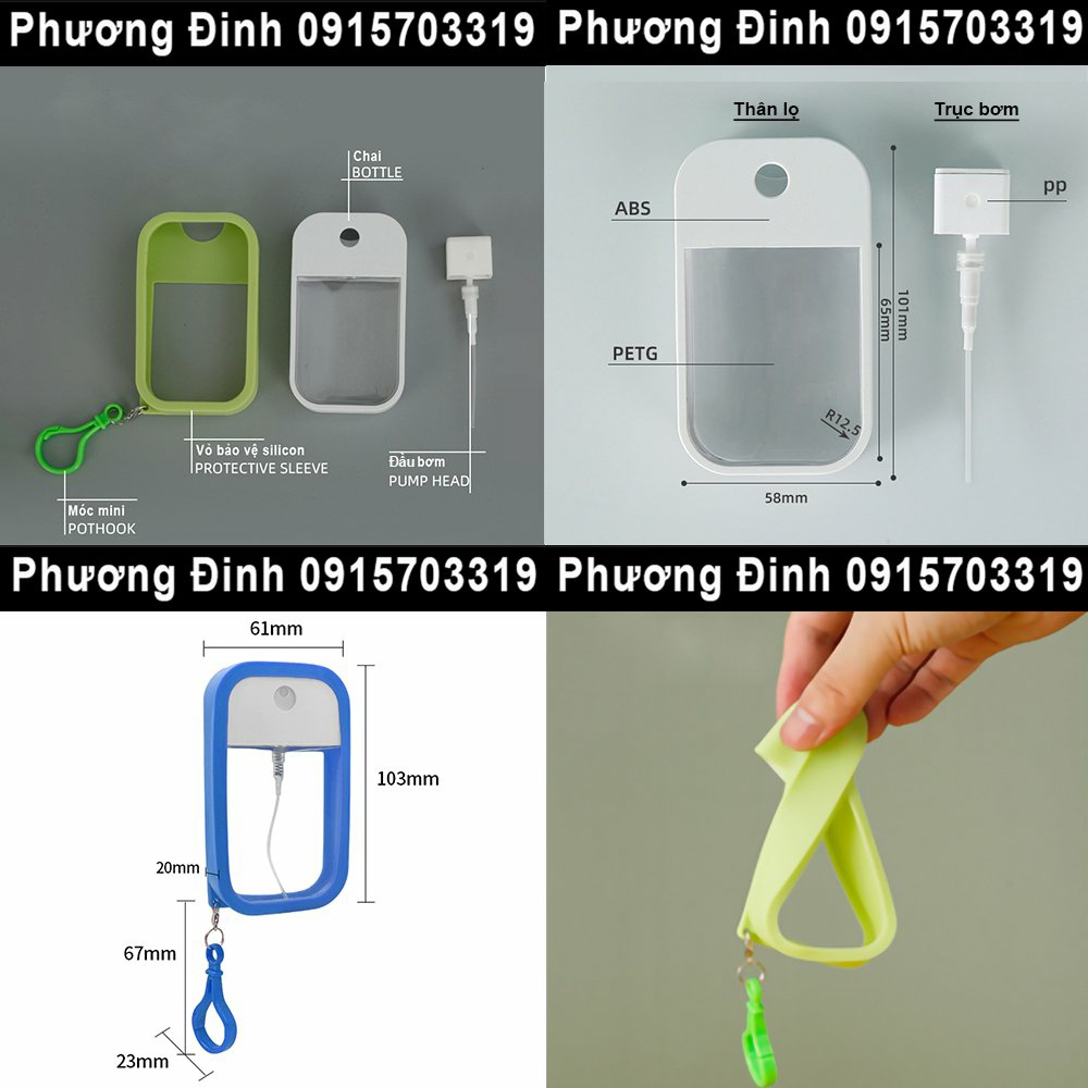 💎 Thông tin chi tiết sản phẩm: - Khối lượng: 100g - Chất liệu: ABS + PETG + PP + Silicone - Kích thước tiêu chuẩn: 58mm x 17mm x 100mm. - Kích thước cả ốp silicon: 61mm x 20mm x 103mm. - Set bao gồm 01 bình xịt cồn + 1 viền silicone + 1 móc khóa + 1 phễu chiết + 1 Sticker dán trang trí