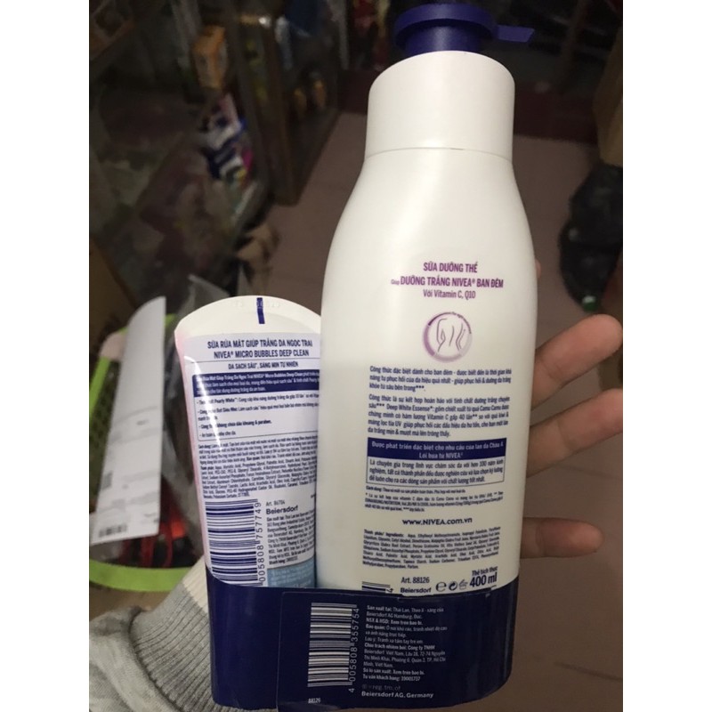 Dưỡng thể nivea đêm 400ml ( kẹp tặng sữa rửa mặt 50ml) Sữa dưỡng thể nivea đêm 400ml kẹp tặng sữa rửa mặt nivea 50ml Số lượng có ít ko nhiều đâu ạ