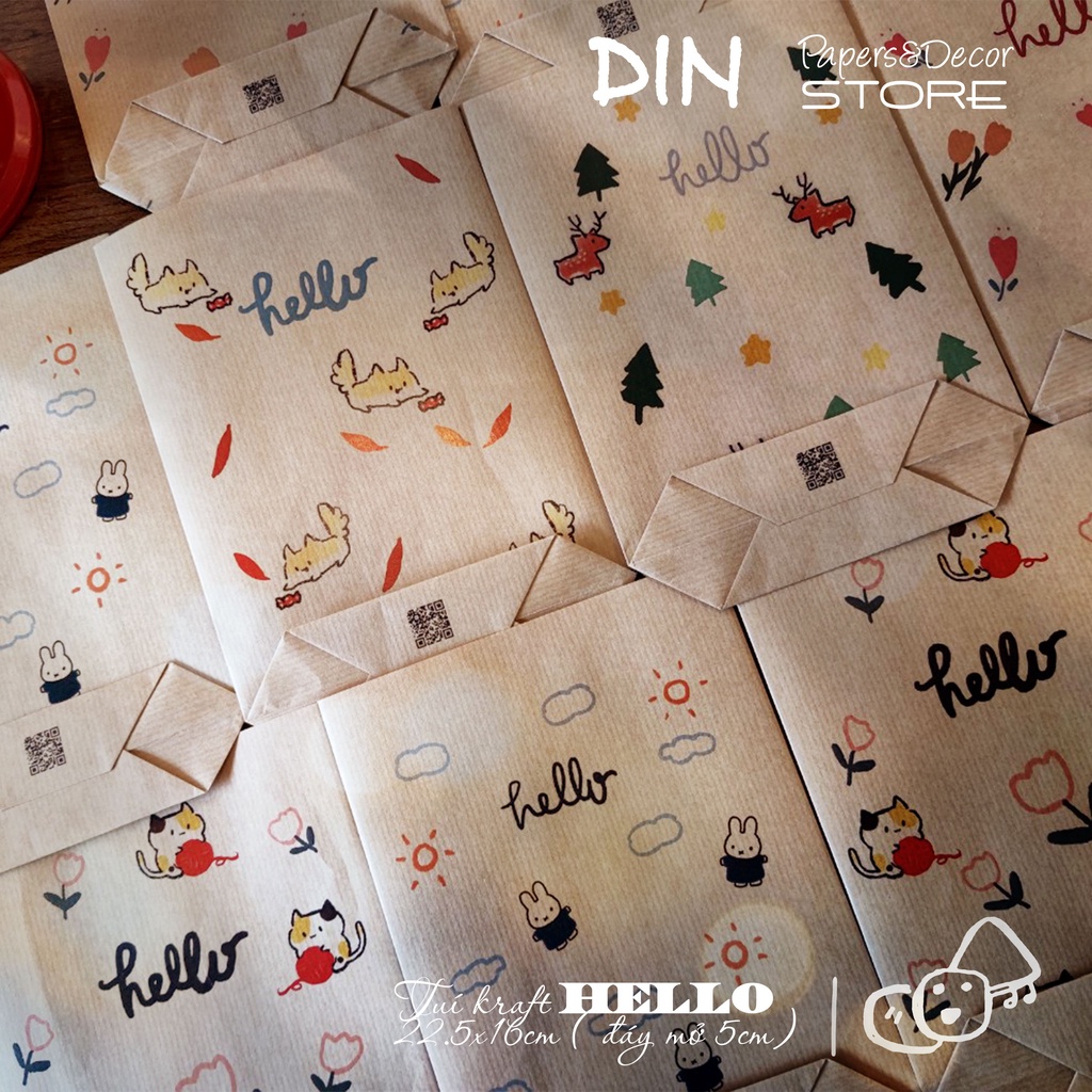 Giới thiệu [TẶNG tem niêm phong] Túi giấy Kraft "Hello" KT 16x22.5cm - Bì giấy gói quà craft không quai, nắp gấp dán sticker
