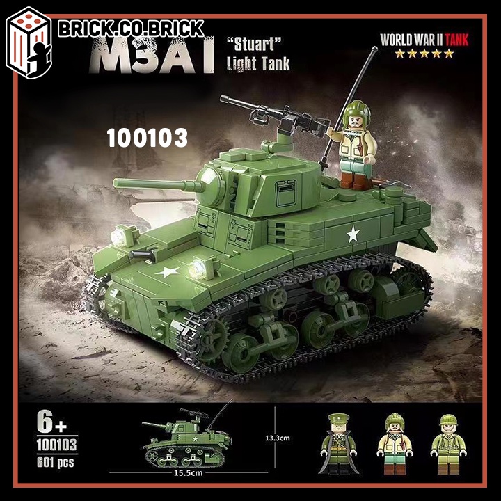 Giới thiệu Tank M3A1 Đồ chơi Lắp ráp Xe Tăng Quân Đội Mỹ Hạng Nhẹ Light Thế chiến 2 Army 100103