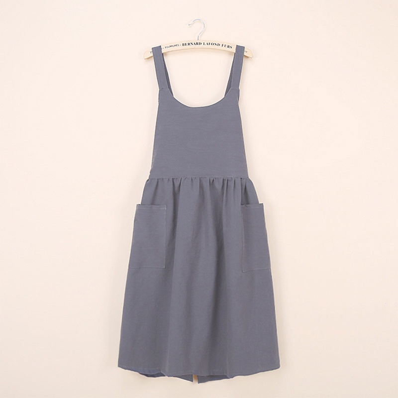 Giới thiệu Tạp Dề Bằng Cotton Lanh Màu Trơn Có Túi Và Dây Thắt Lưng Tùy Chỉnh Cho Nữ