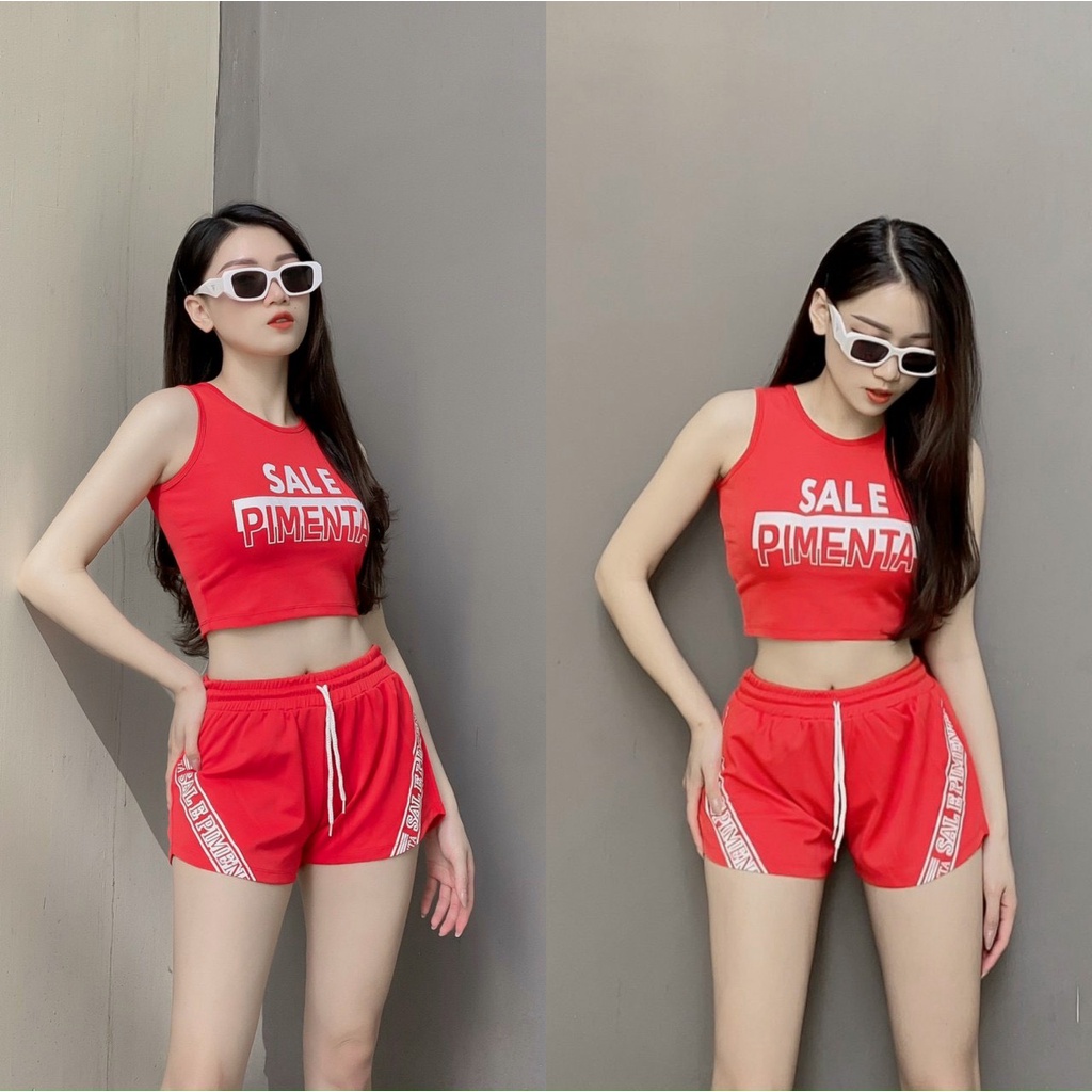 Thể Thao & Du Lịch > Thời Trang Thể Thao & Dã Ngoại > Bộ Đồ Thể Thao > Đồ tập gym yoga thể thao nữ, set bộ áo crop quần đùi 2 lớp phối chữ nhiều màu đủ size Bin Sports BN061