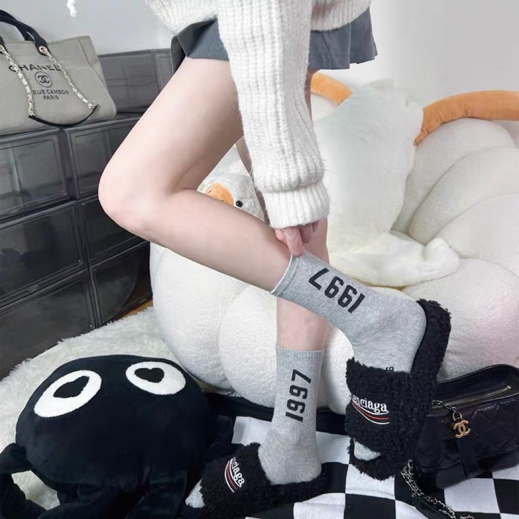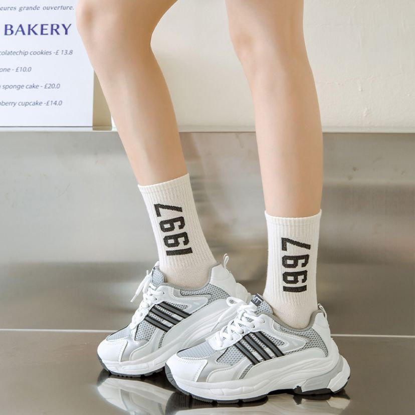Giới thiệu Tất cổ cao nam nữ Vớ thể thao đen trắng phiên bản Hàn Quốc 1997