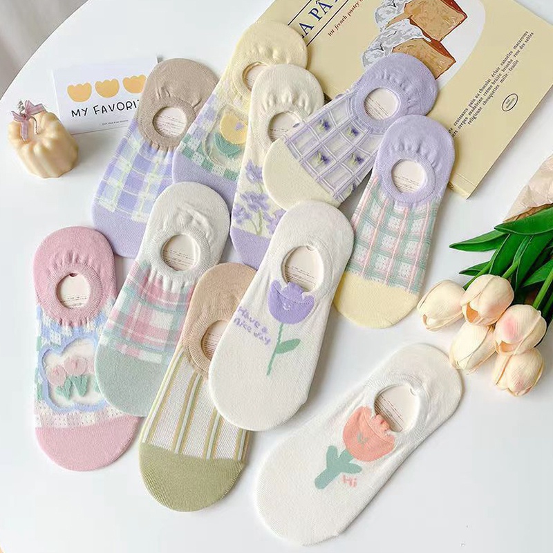 Giới thiệu Tất Cổ Thấp Chống Trượt Họa Tiết Hoa Tulip Dễ Thương Cho Bé Gái