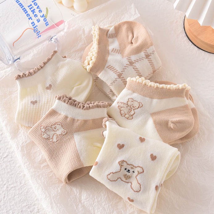 Giới thiệu Tất cổ thấp nữ set 5 đôi họa tiết dễ thương, vớ cổ thấp chất liệu cotton co giãn 4 chiều - Ekiu Shop