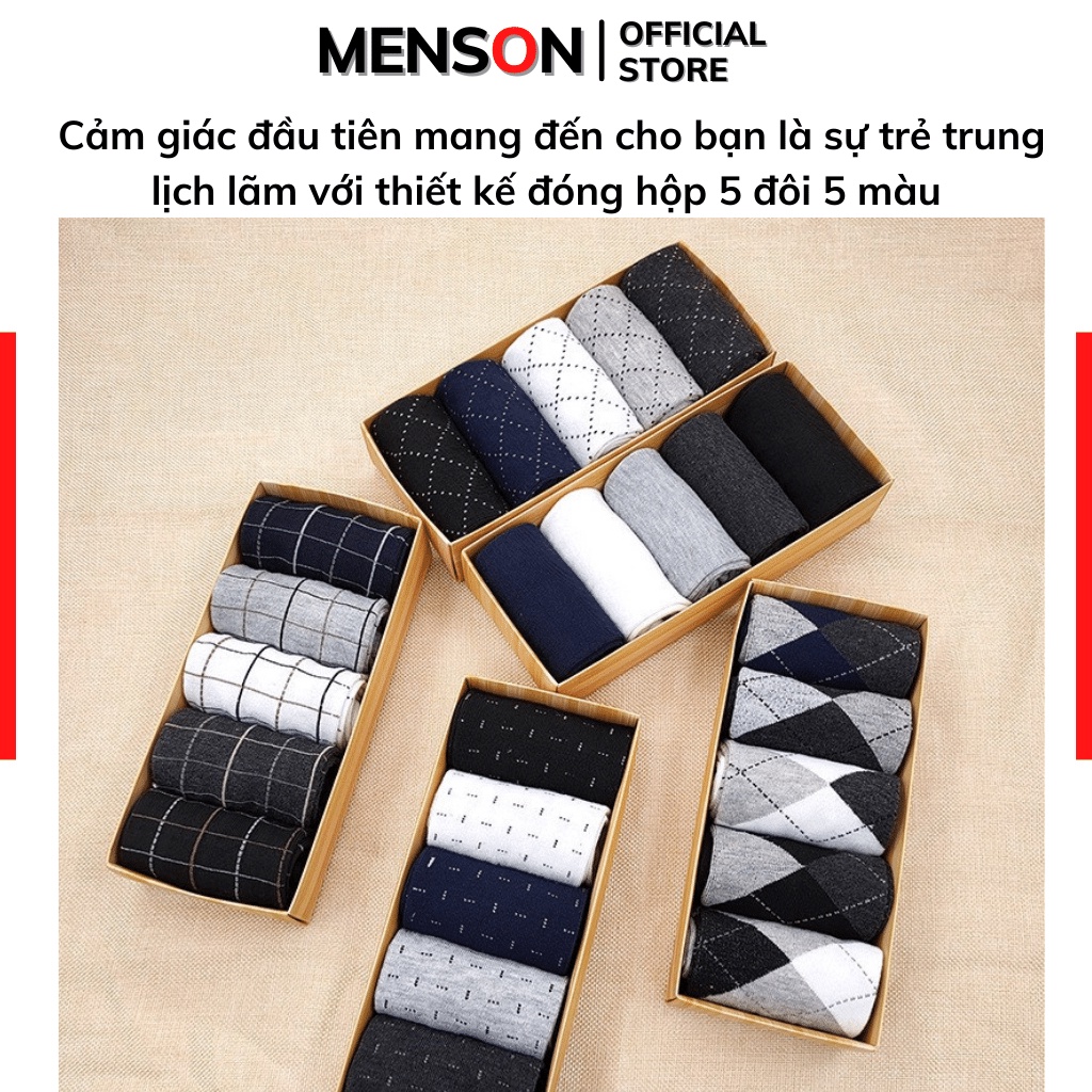 Tất nam cổ cao công sở mùa hè set hộp quà tặng 5 đôi họa tiết thời trang đẹp MENSON TN01 Set tất vớ nam dài cao cấp