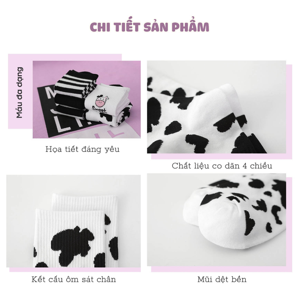 Thông tin chi tiết sản phẩm tất vớ nữ cổ cao set 5 đôi họa tiết bò sữa dễ thương, chất liệu cotton co giãn 4 chiều - Cherry Shop