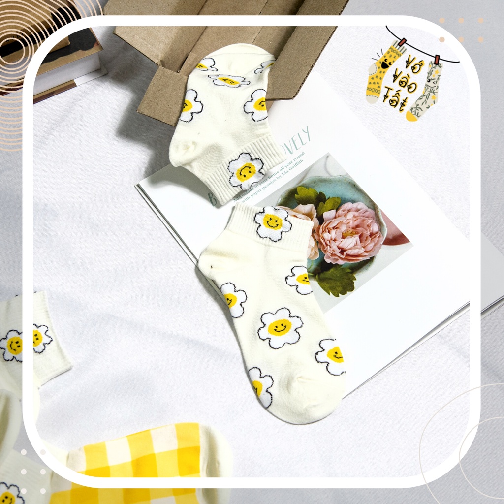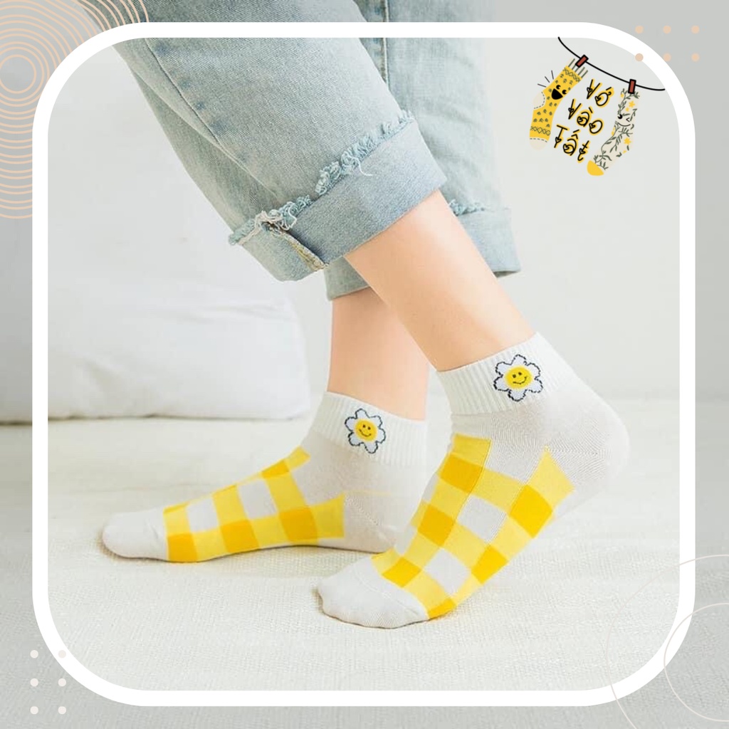 ĐẶC ĐIỂM SẢN PHẨM - Họa tiết hoa vàng nữ tính, có mặt cười đáng yêu, caro vàng rực rỡ. - Chất liệu cotton mỏng thoáng. - Màu sắc đơn giản nhưng vẫn đủ nổi bật và cá tính. - Freesize