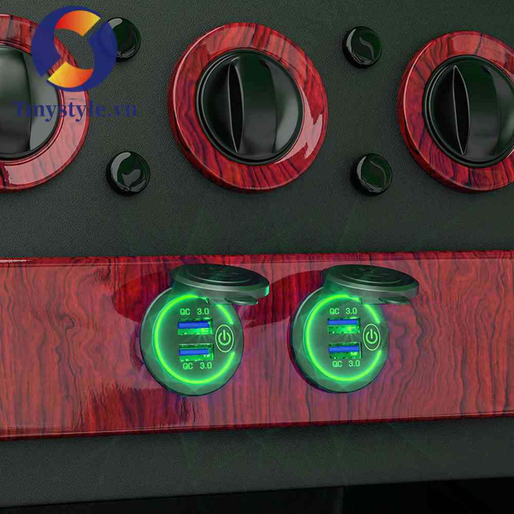 Ổ cắm sạc USB P19-S Dual QC 3.0 Sạc nhanh Bộ chuyển đổi nguồn USB có dây cho ô tô Thuyền hàng hải Xe máy ATV Xe tải Tính năng ' 1.Với công tắc cảm ứng, rất dễ sử dụng, tiết kiệm điện năng, được làm bằng nhựa ABS cao cấp, bền đẹp; 2.Được thiết kế với hai cổng USB sạc nhanh QC 3.0, có thể sạc cùng lúc hai thiết bị tương thích, nhanh hơn 4 lần so với bộ sạc truyền thống; 3.Hỗ trợ lắp đặt trên xe máy 12V-24V, ô tô, tàu thuyền, động cơ, máy cắt cỏ, SUV, ATV và máy kéo.