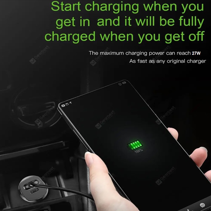 Thông số kỹ thuật sản phẩm - Nguồn vào 12-24 V - Hỗ trợ sạc nhanh Quick Charge 3.0 - Công suất: 27W - Type C Output: 5V/3A, 9V/3A, 12V/2.5A ( Max). PPS 3.3 - 5.9V/3A - USB Output: 5V/4.5A,4.5V/5A,9V/2A,12V/1.5A ( Max) PPS 3.3 - 11V/4.8A - USB+Type-C: 5V/4.8A Max - Chất liệu: Hợp kim nhôm cao cấp - Kích thước: 43*20.5mm