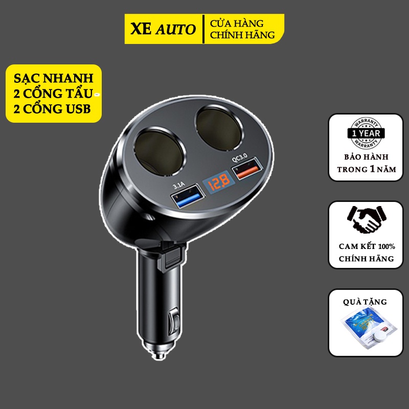✔️ ĐẶC TÍNH SẢN PHẨM: ✅ Tẩu sạc ô tô được chia thành 2 cổng tẩu sạc để cắm được nhiều thiết bị hơn, và có 2 cổng sạc usb 3.1A sạc cực và công nghệ sạc nhanh mới nhất bây giờ QC3.0 cho mọi thiết bị điện tử: điện thoại, ipad, máy ảnh… ✅ Tẩu sạc ô tô có chức năng ổn định điện áp, tự ngắt dòng giúp thiết bị an toàn hơn ✅ Màn hình led bên trên tẩu sạc hiển thị điện áp ắc quy xe, nguồn ra 2 cổng usb. Sản phẩm rất tiện lợi cho các bác chủ xe.
