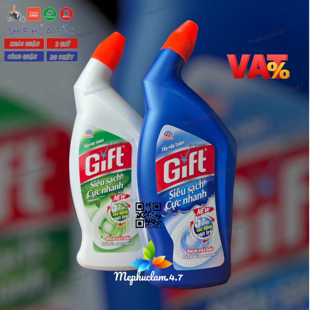 Gift Tẩy Rửa Toilet Siêu Sạch với thiết kế kiểu dáng phần cổ chai có độ cong đặc biệt, thuận tiện tẩy mọi ngóc ngách của bồn cầu sạch bóng và thơm mát. Công thức đặc chế tiên tiến mới chỉ với 5 giây tác động cực nhanh hiệu quả - Tẩy siêu nhanh - Sạch vết bẩn - Khử mùi hôi - Ngừa vi khuẩn - An toàn, sáng bóng