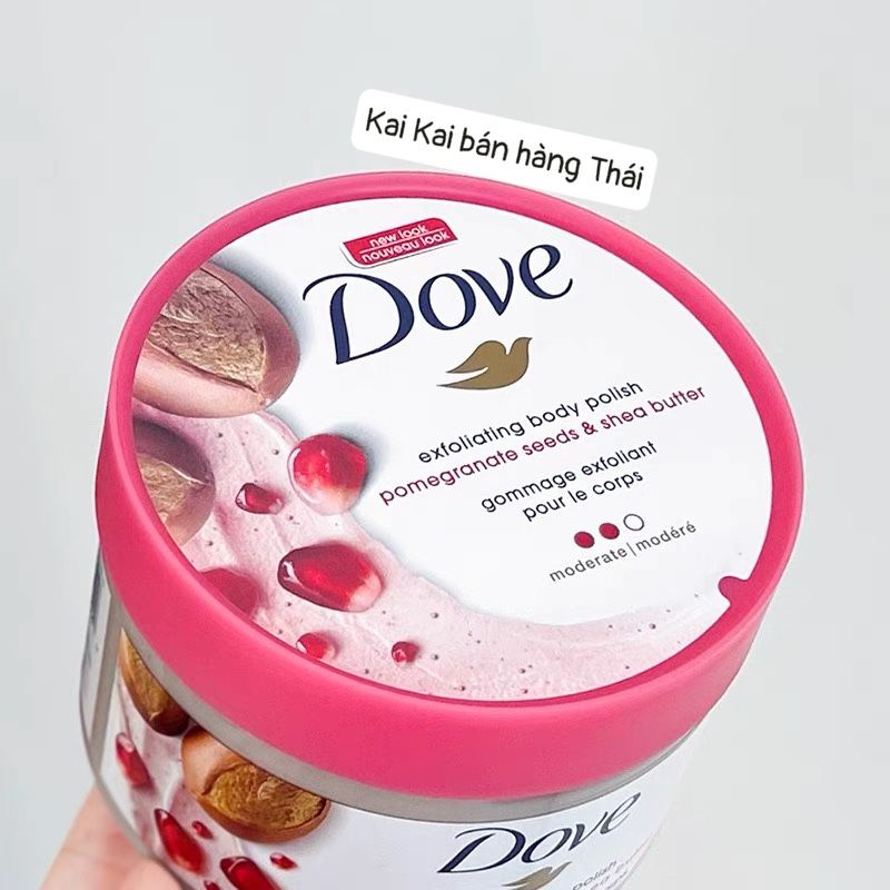 Giới thiệu Tẩy Tế Bào Chết Body Dove Hương Lựu Bơ Hạt Mỡ Dưỡng Trắng Cấp Ẩm 298g