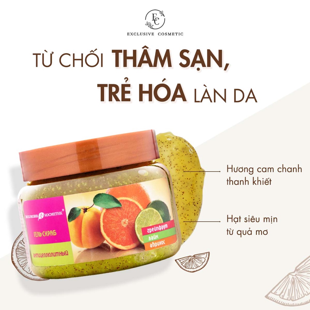 Tẩy Da Chết Body Trắng Sáng Mềm Mịn Da Cam Chanh Exclusive Cosmetic Grapefruit Lime Apricot 380g