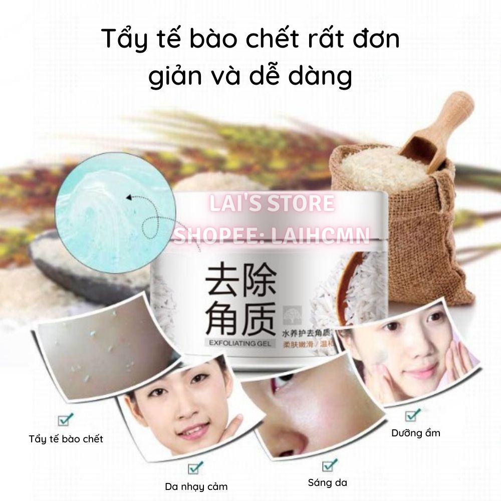 **“Tẩy Tế Bào Chết Gạo Bioaqua” thích hợp mọi loại da, dùng được cho da mụn, không gây kích ứng. ------------------------------------------ II. Công Dụng Nổi Bật: - Giải pháp giúp bạn có được làn da mềm mại, mịn màng và trắng sáng, tươi trẻ ngay tại nhà. - Giúp loại bỏ các tế bào chết, tế bào bị lão hóa trên da (tế bào chết, tế bào bị lão hóa làm cho da phát triển mụn). - Giúp da mịn màng, sáng. - Giúp sạch lỗ chân lông, se khít lỗ chân lông. - Xóa mờ các vết thâm, làm cho da đều màu. - Bảo vệ tế bào da làm da khỏe mạnh hơn. - Cân bằng độ ẩm, tăng khả năng đàn hồi cho da.