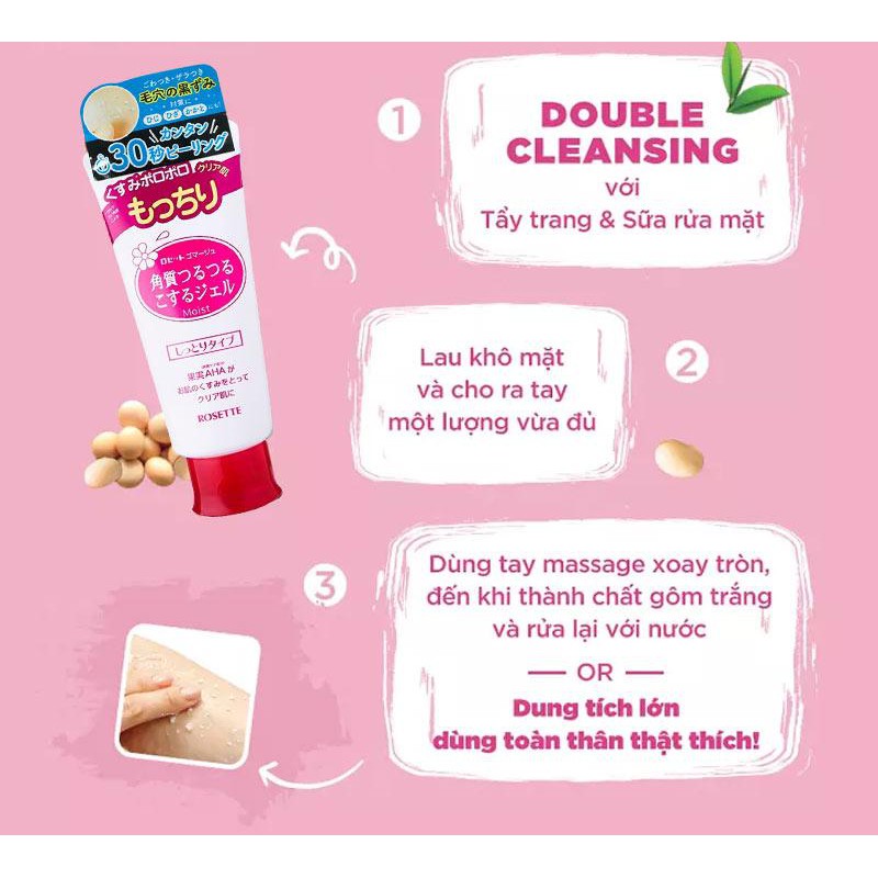 ROSETTE Gommage Moist Peeling Gel (hồng) – Dành cho da khô, hỗn hợp khô - Được thiết kế với công thức phù hợp cho những làn da khô, dễ mất nước, ghét cảm giác da khô căng sau khi sử dụng các loại tẩy tế bào chết thông thường.