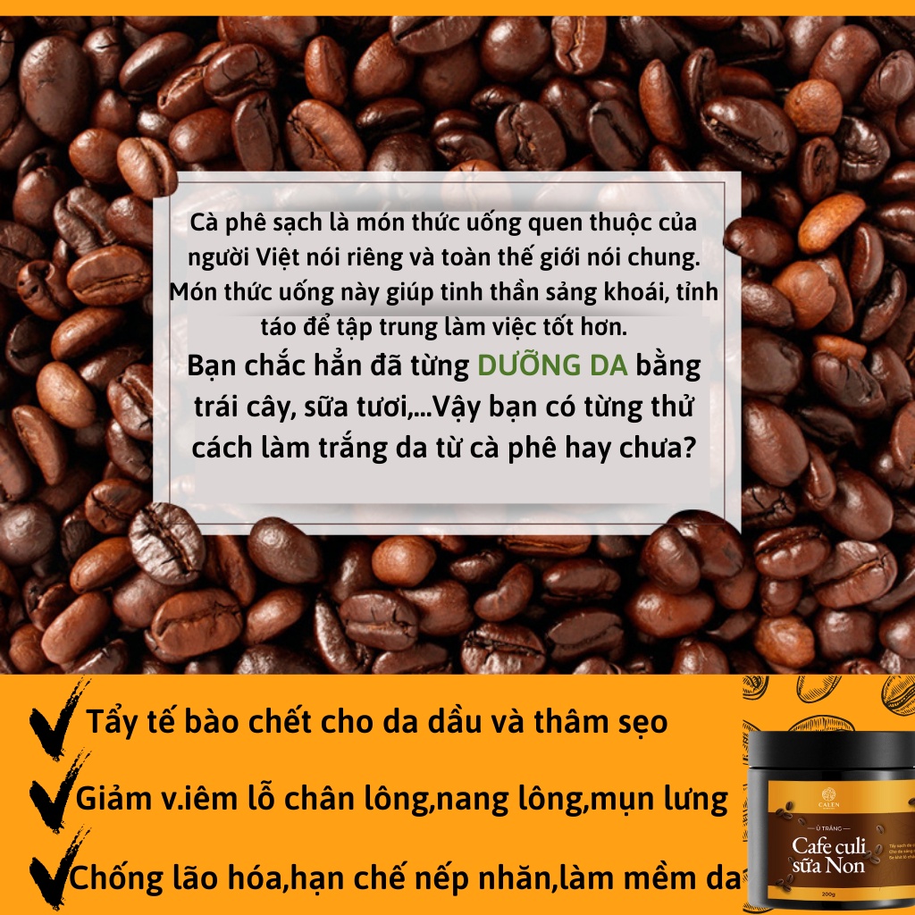 Sắc Đẹp > Chăm sóc da mặt > Mặt nạ > Tẩy tế bào chết, tẩy da chết,tắm trắng body Cafe Sữa Non dưỡng trắng da, se nhỏ lỗ chân lông hũ 200gram Calen Skincare