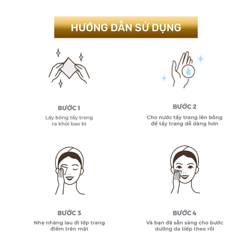 • HƯỚNG DẪN SỬ DỤNG Bước 1: Cho sản phẩm vào bông tẩy trang Bước 2: Nhắm mắt và nhẹ nhàng đặt miếng bông lên vùng mắt, giữ vài giây Bước 3: Nhẹ nhàng lau sạch vùng mắt và rửa lại với nước Bước 4: Đợi 5 giây và lau sạch