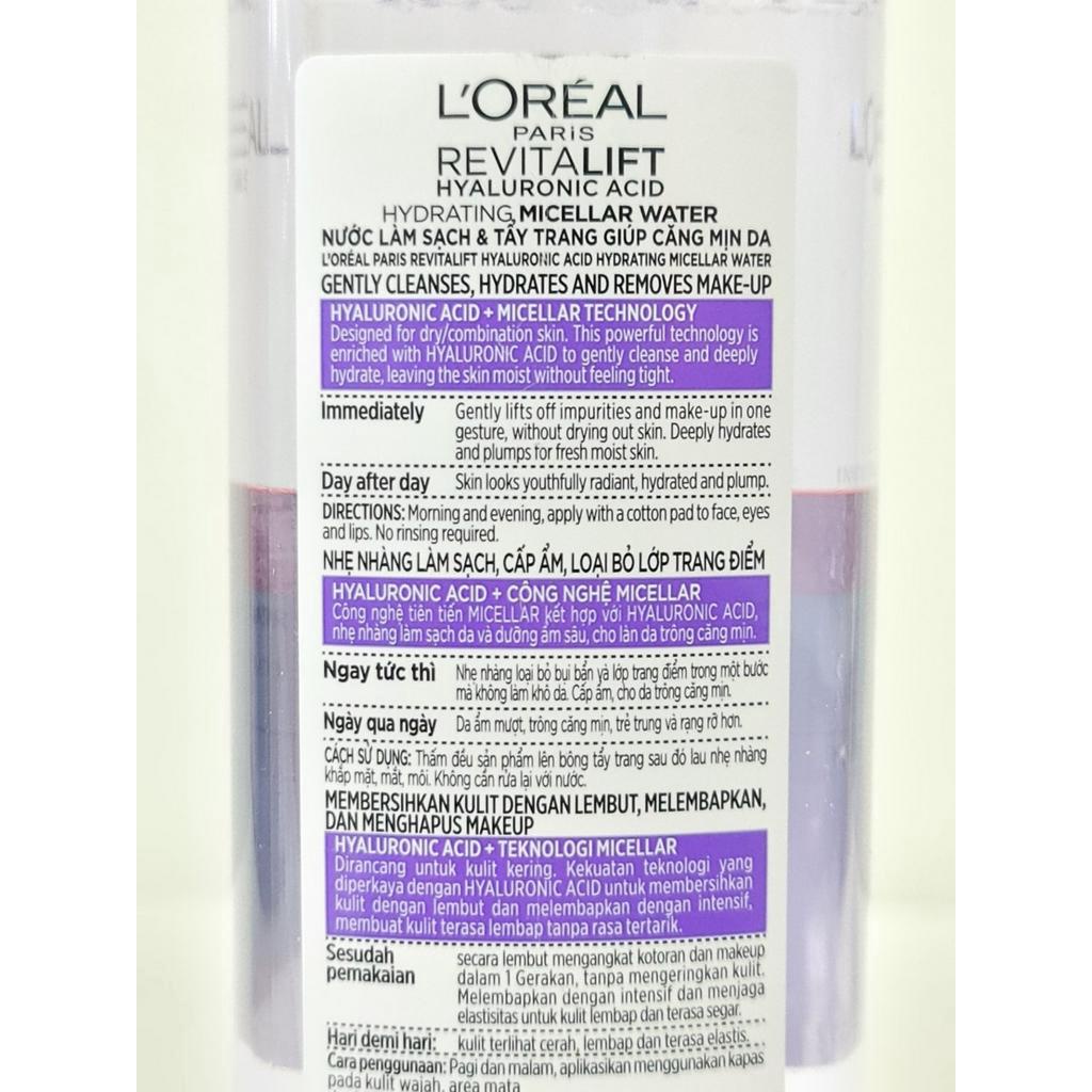 Nước Tẩy Trang Làm Sạch Và Cấp Ẩm L'Oreal Revitalift Hyaluronic Acid Hydrating Micellar Water 400ml - Thương hiệu: L'Oreal - Thể tích: 400ml