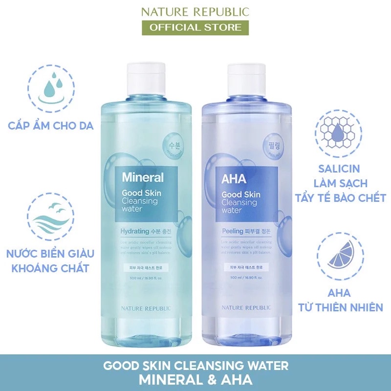Giới thiệu Nước Tẩy Trang Nature Republic Dành Cho Mọi Loại Da Mineral/AHA Good Skin Cleansing Water 500ml